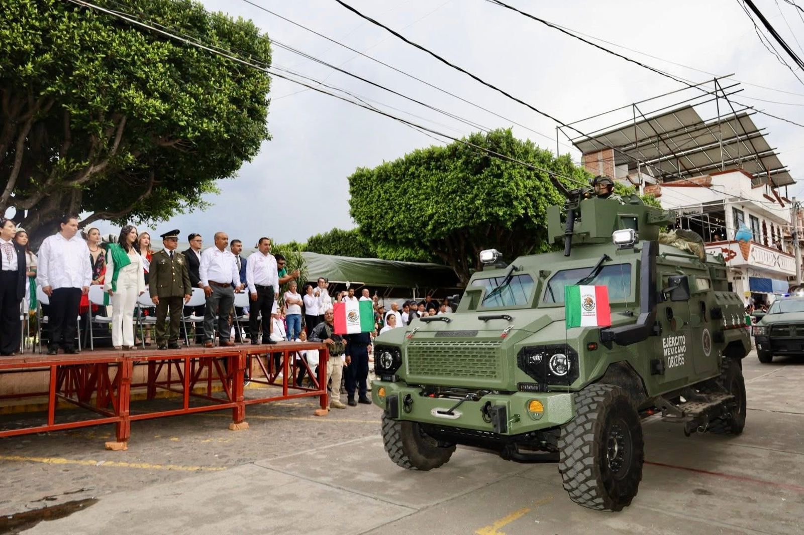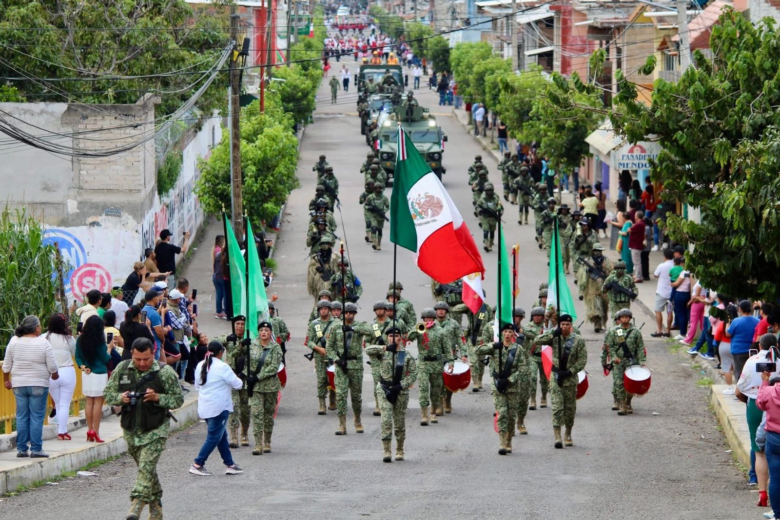 Encabezado por la presidenta municipal Diana Caballero, el Cabildo y personal del Ejército Mexicano de la XXI Zona Militar, el desfile reunió a cientos de familias que aplaudieron el paso de estudiantes, organizaciones sociales, autoridades policiales y, de manera inédita, de soldados y grupos especiales del Ejército con vehículos de exhibición.